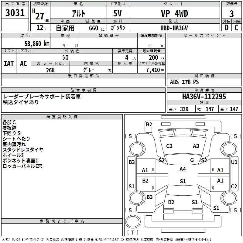 Suzuki ALTO VAN с аукциона Японии TAA Hokkaido лот № 3031