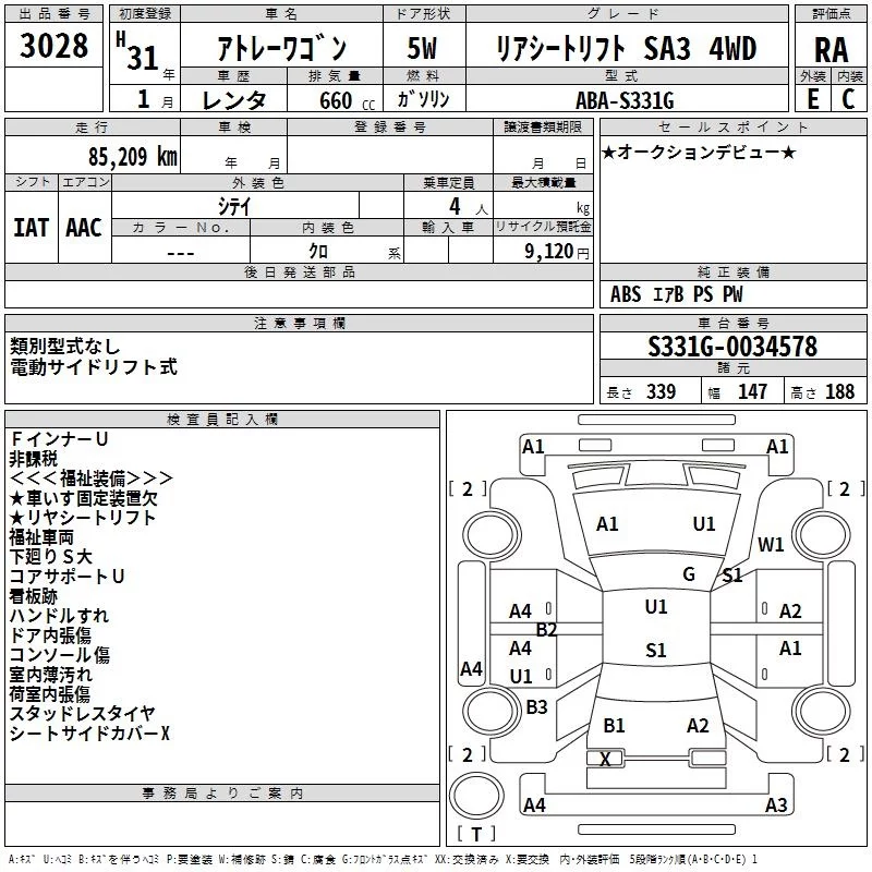 Daihatsu Atrai Wagon с аукциона Японии TAA Hokkaido лот № 3028