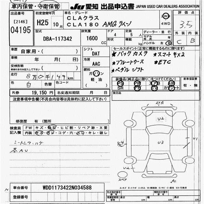 Mercedes-Benz CLA CLASS с аукциона Японии JU Aichi лот № 4195