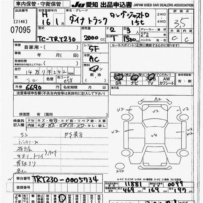 Toyota DYNA с аукциона Японии JU Aichi лот № 7095