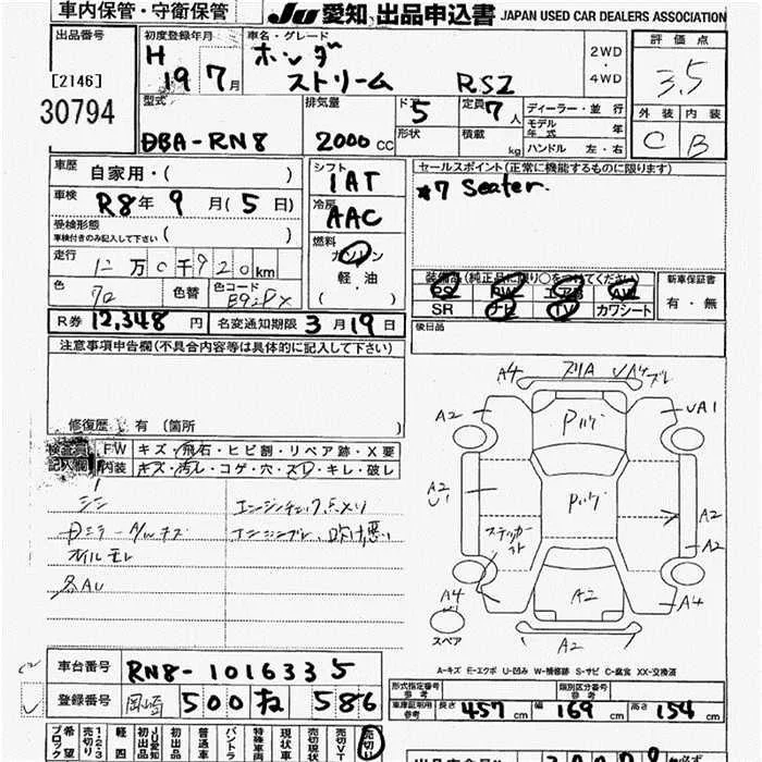 Honda STREAM с аукциона Японии JU Aichi лот № 30794