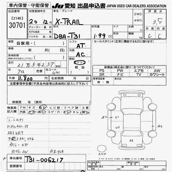 Nissan X-TRAIL с аукциона Японии JU Aichi лот № 30701