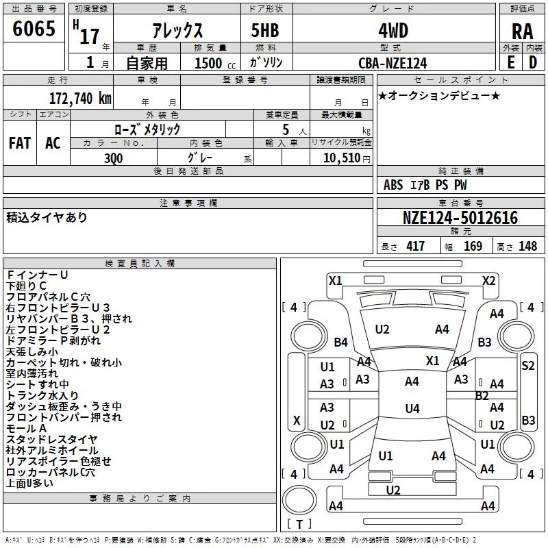 Toyota ALLEX с аукциона Японии TAA Hokkaido лот № 6065