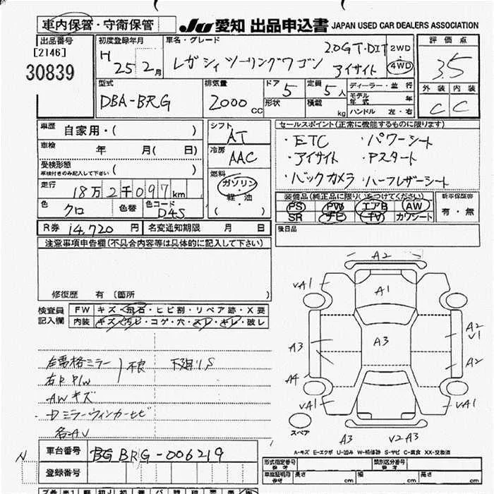 Subaru LEGACY с аукциона Японии JU Aichi лот № 30839