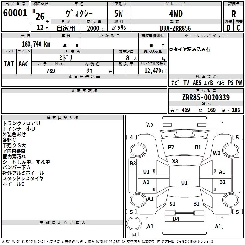 Toyota VOXY с аукциона Японии TAA Hokkaido лот № 60001