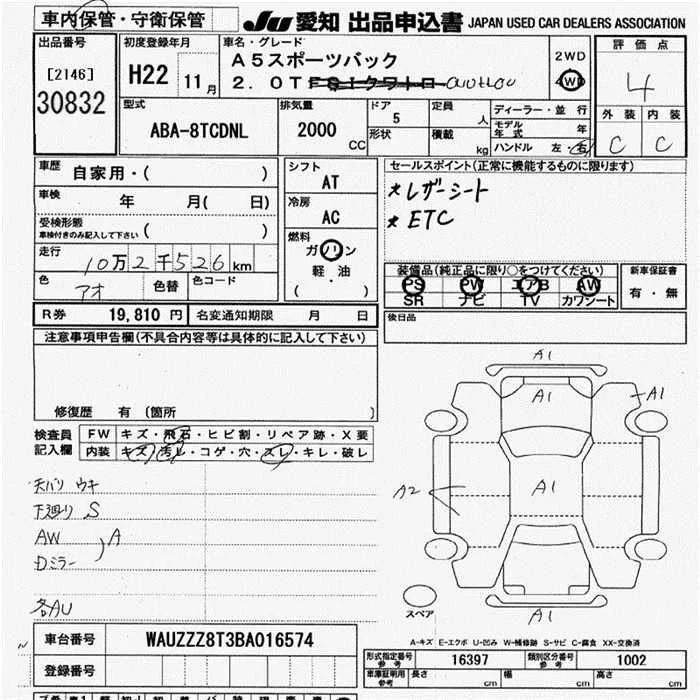 Audi A5 с аукциона Японии JU Aichi лот № 30832