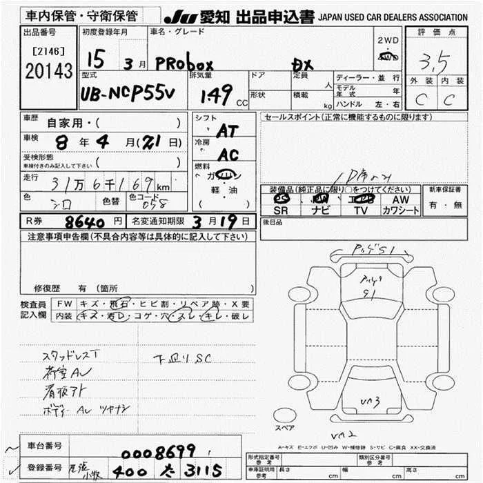 Toyota PROBOX с аукциона Японии JU Aichi лот № 20143