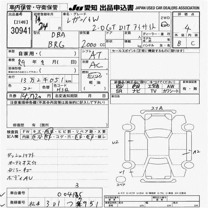 Subaru LEGACY с аукциона Японии JU Aichi лот № 30941