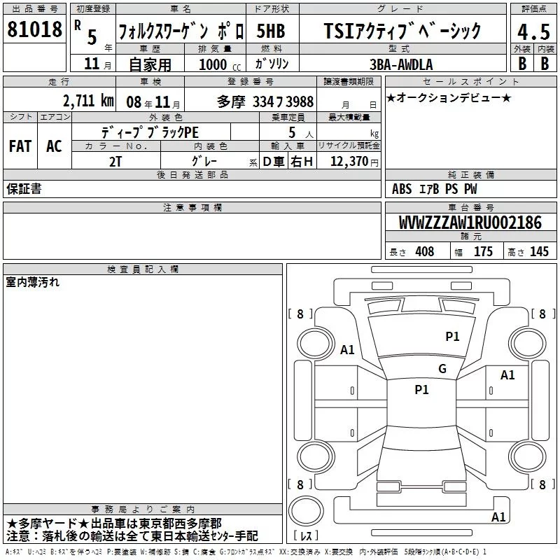 Volkswagen POLO с аукциона Японии TAA Kanto лот № 81018