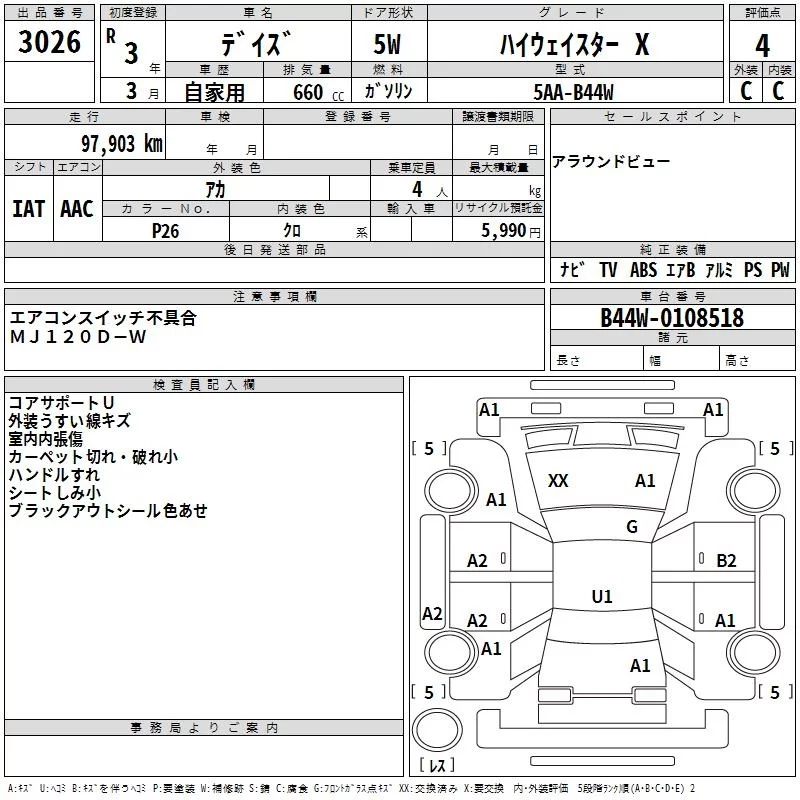 Nissan DAYZ с аукциона Японии TAA Kanto лот № 3026