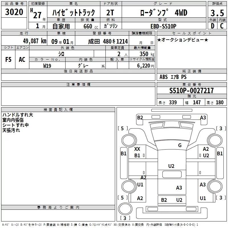 Daihatsu HIJET TRUCK с аукциона Японии TAA Kanto лот № 3020