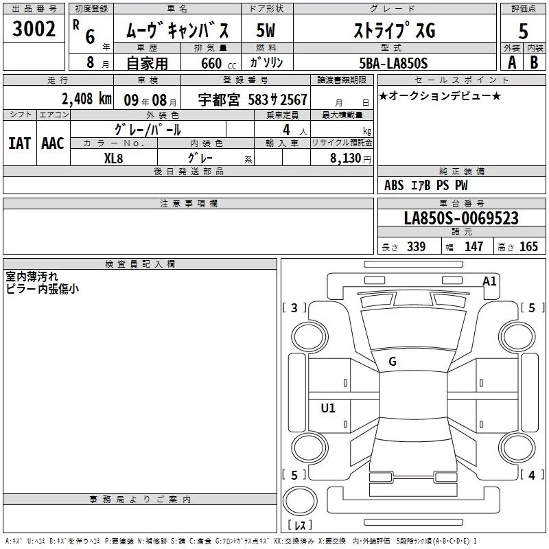 Daihatsu MOVE CANBUS с аукциона Японии TAA Kanto лот № 3002