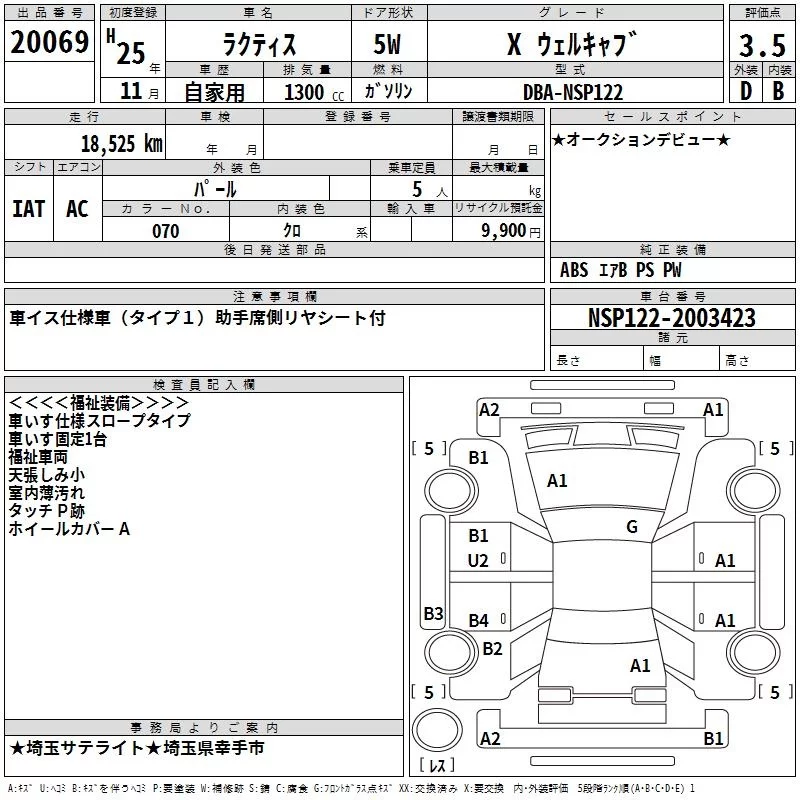 Toyota RACTIS с аукциона Японии TAA Kanto лот № 20069