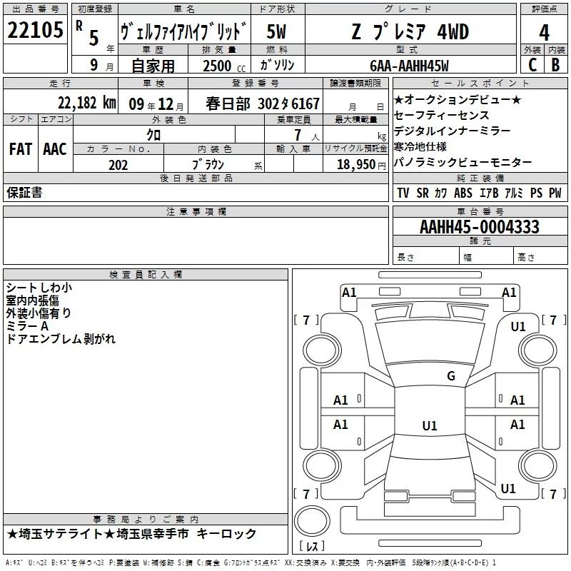 Toyota VELLFIRE с аукциона Японии TAA Kanto лот № 22105