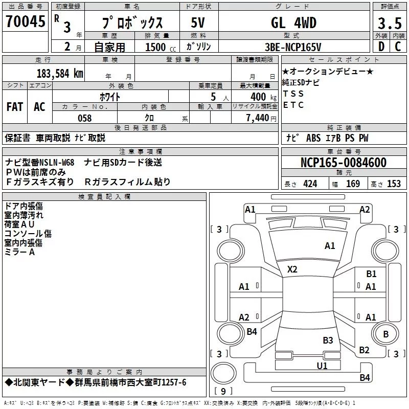 Toyota PROBOX с аукциона Японии TAA Kanto лот № 70045