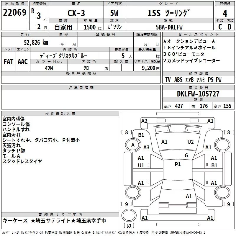 Mazda CX-3 с аукциона Японии TAA Kanto лот № 22069