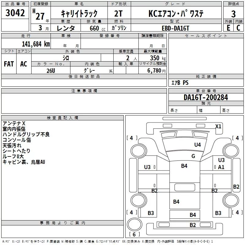 Suzuki CARRY TRUCK с аукциона Японии TAA Kanto лот № 3042
