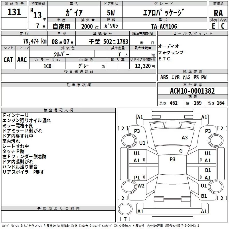 Toyota GAIA с аукциона Японии TAA Kanto лот № 131