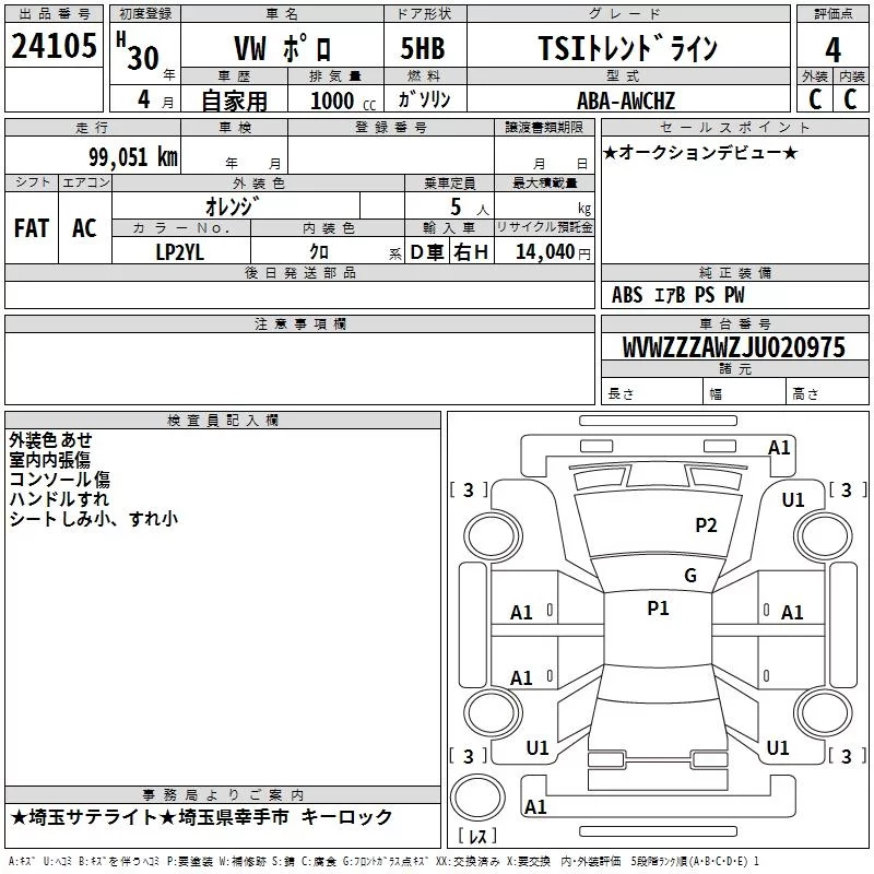 Volkswagen POLO с аукциона Японии TAA Kanto лот № 24105