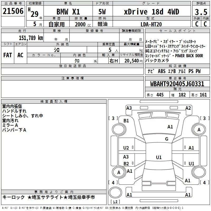 BMW X1 с аукциона Японии TAA Kanto лот № 21506