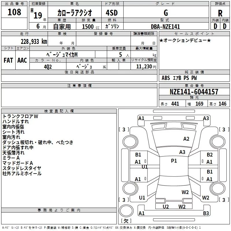 Toyota COROLLA AXIO с аукциона Японии TAA Kanto лот № 108