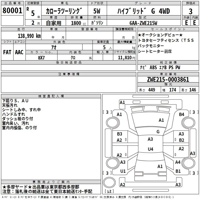 Toyota COROLLA TOURING с аукциона Японии TAA Kanto лот № 80001