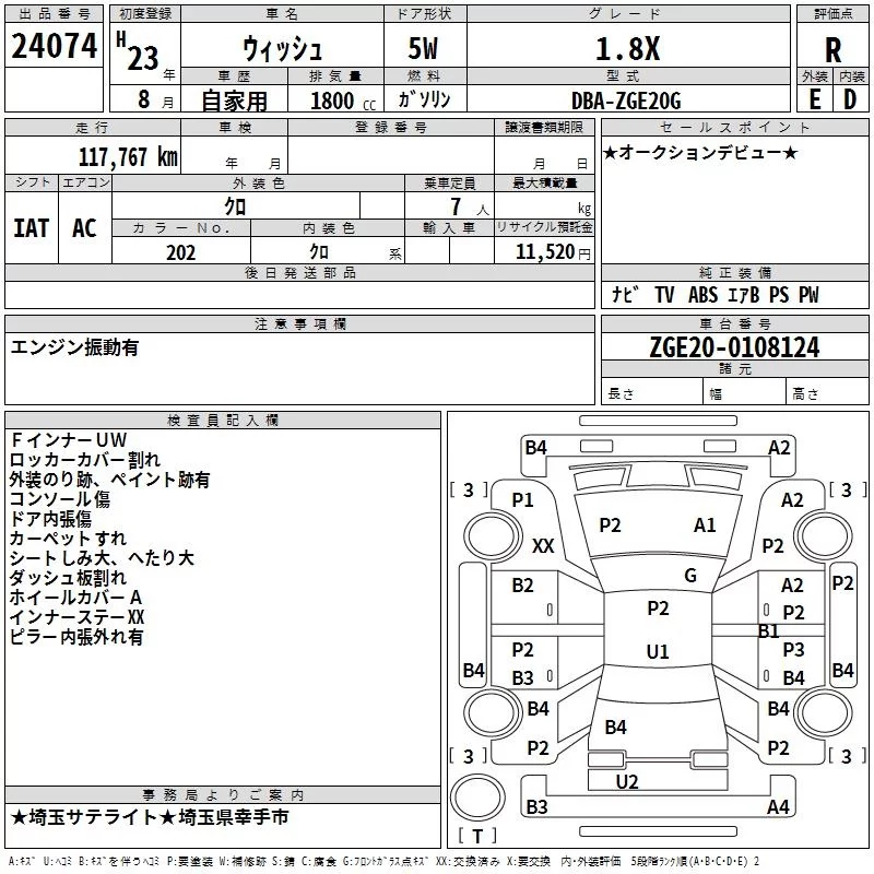 Toyota WISH с аукциона Японии TAA Kanto лот № 24074