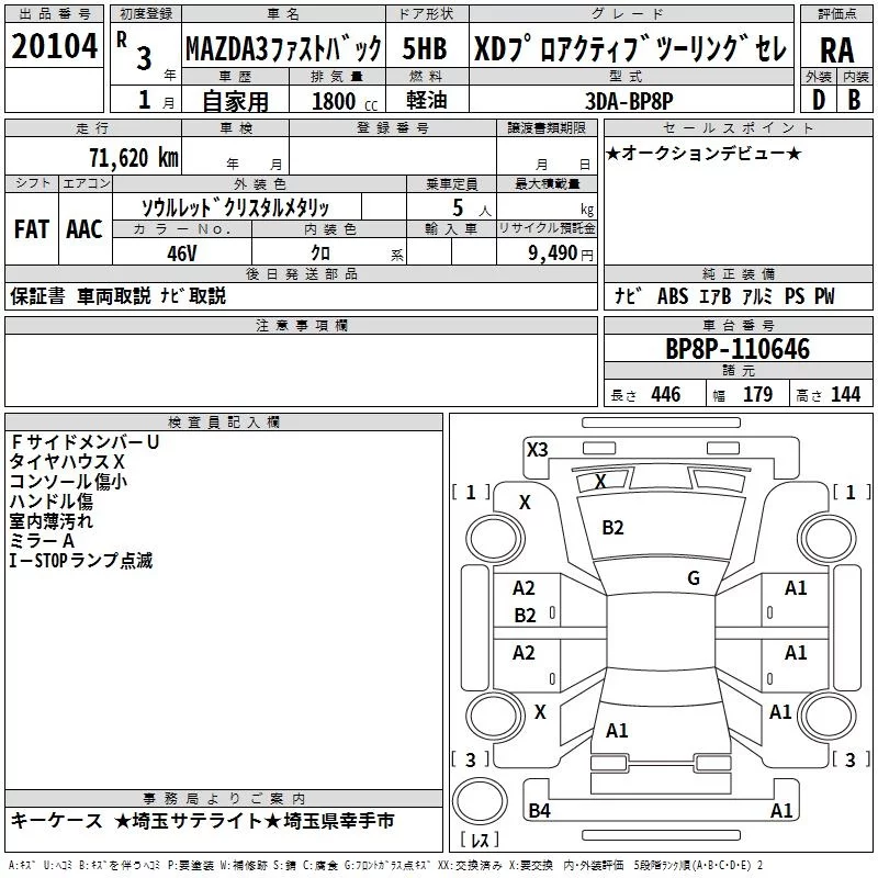 Mazda MAZDA3 с аукциона Японии TAA Kanto лот № 20104
