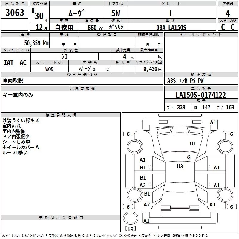 Daihatsu MOVE с аукциона Японии TAA Kanto лот № 3063