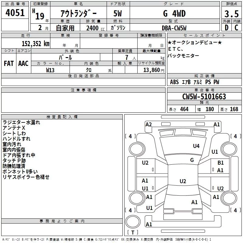 Mitsubishi OUTLANDER с аукциона Японии TAA Kanto лот № 4051