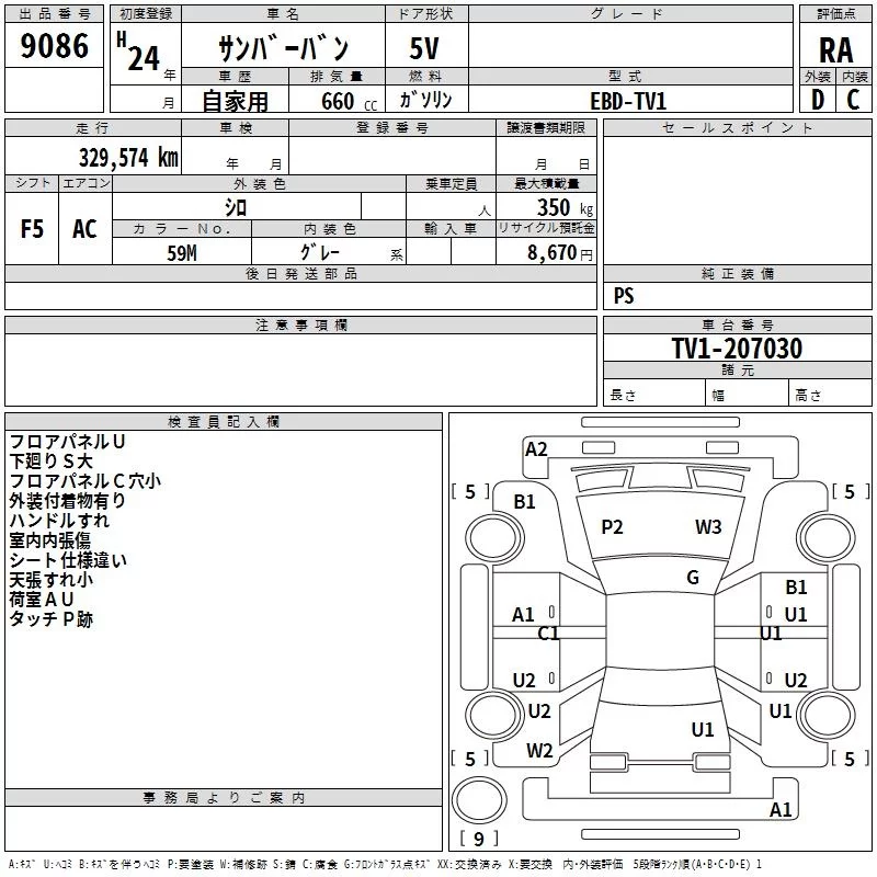 Subaru SAMBAR с аукциона Японии TAA Kanto лот № 9086