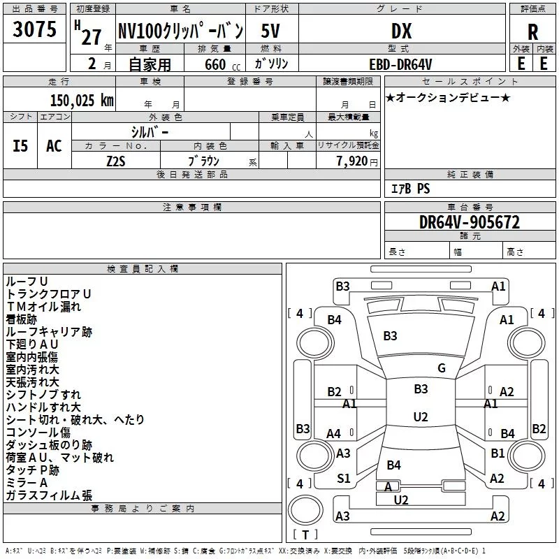 Nissan CLIPPER VAN с аукциона Японии TAA Kanto лот № 3075