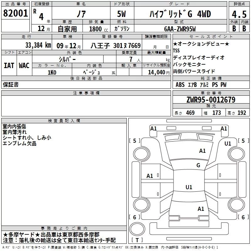 Toyota NOAH с аукциона Японии TAA Kanto лот № 82001