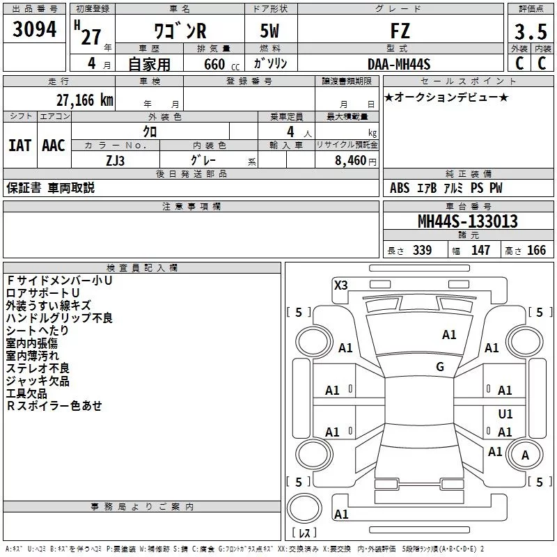 Suzuki WAGON R с аукциона Японии TAA Kanto лот № 3094