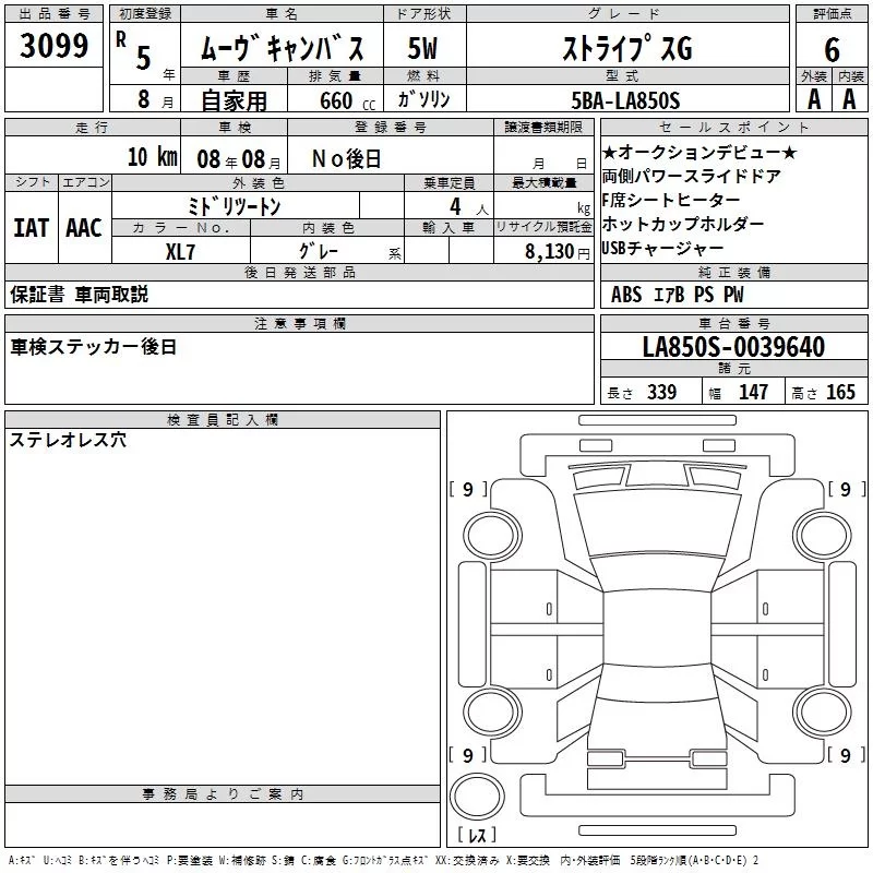 Daihatsu MOVE CANBUS с аукциона Японии TAA Kanto лот № 3099