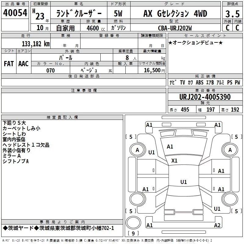 Toyota LAND CRUISER с аукциона Японии TAA Kanto лот № 40054