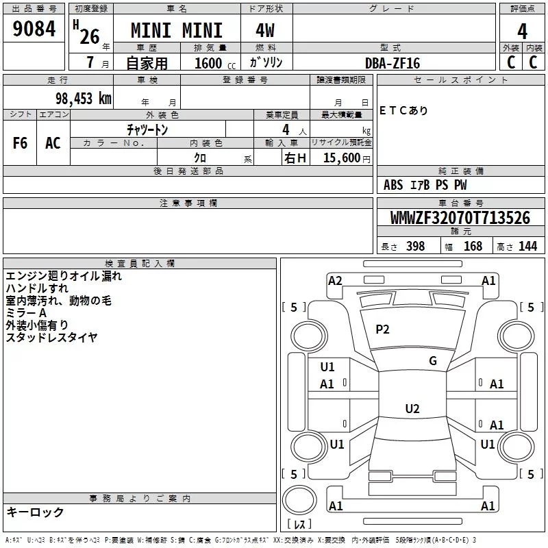 BMW MINI с аукциона Японии TAA Kanto лот № 9084