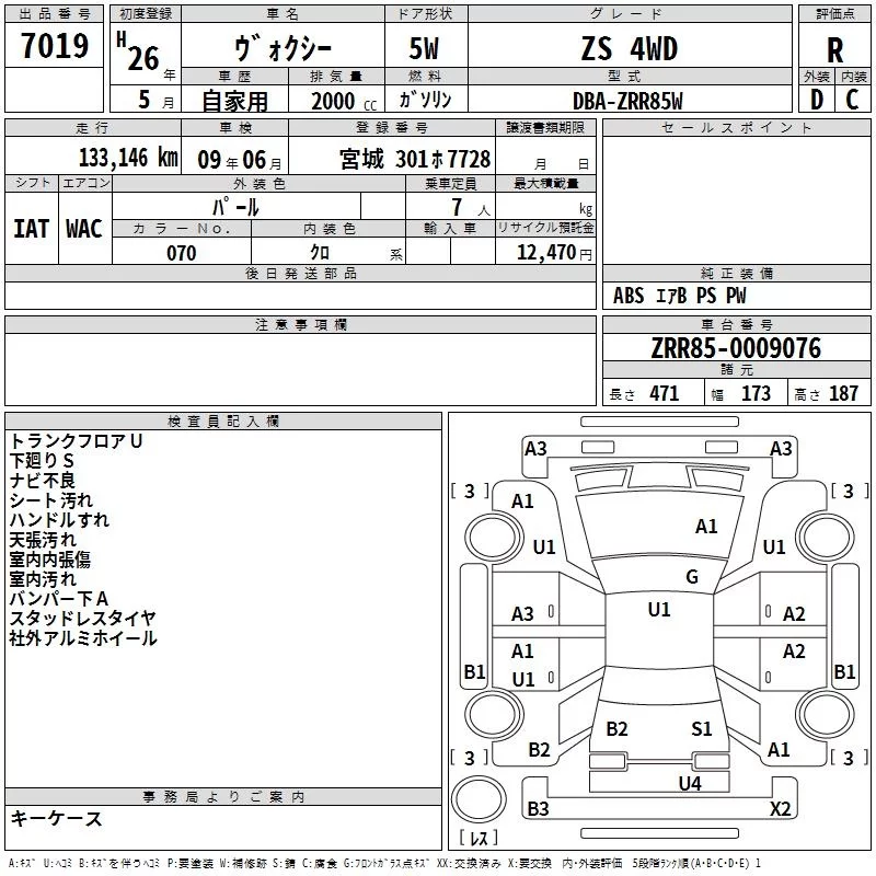 Toyota VOXY с аукциона Японии TAA Tohoku лот № 7019