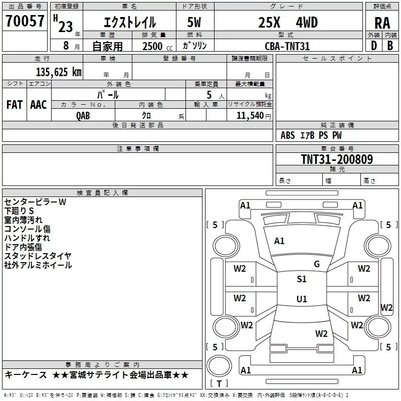 Nissan X-TRAIL с аукциона Японии TAA Tohoku лот № 70057