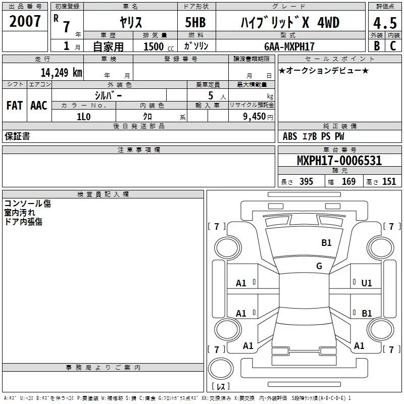 Toyota YARIS с аукциона Японии TAA Tohoku лот № 2007