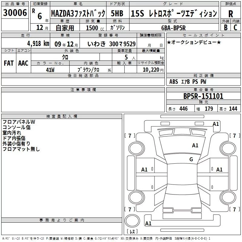 Mazda MAZDA3 с аукциона Японии TAA Tohoku лот № 30006