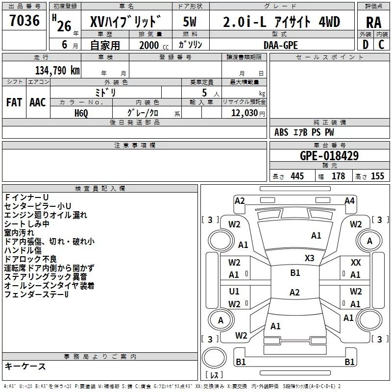 Subaru XV с аукциона Японии TAA Tohoku лот № 7036