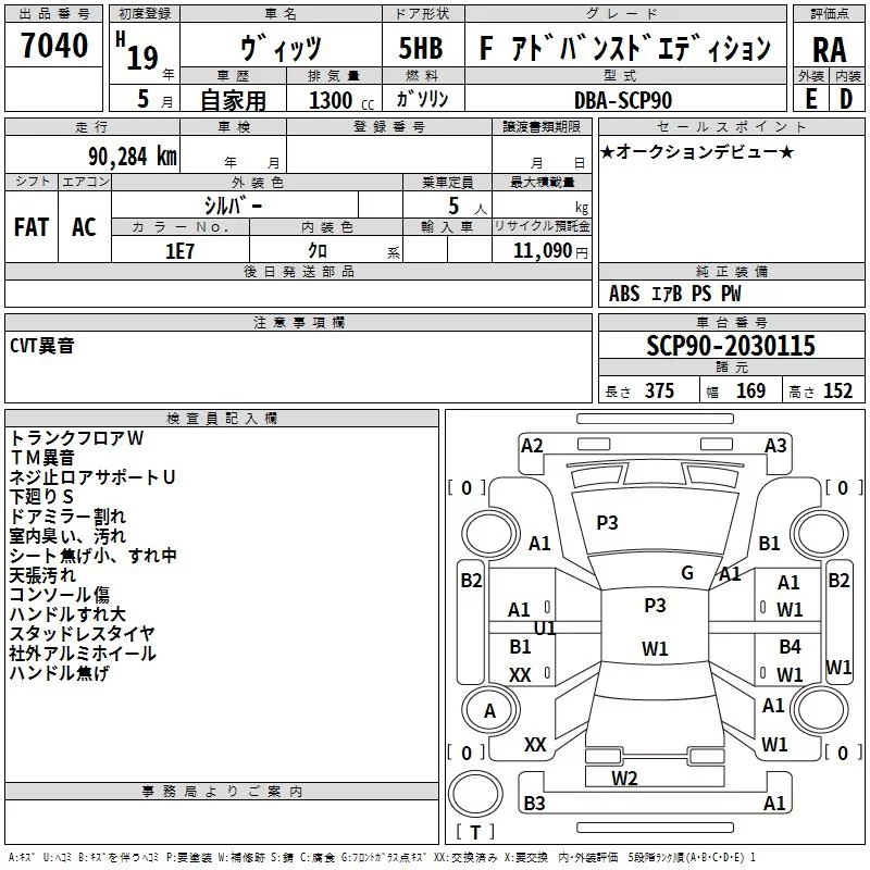 Toyota VITZ с аукциона Японии TAA Tohoku лот № 7040