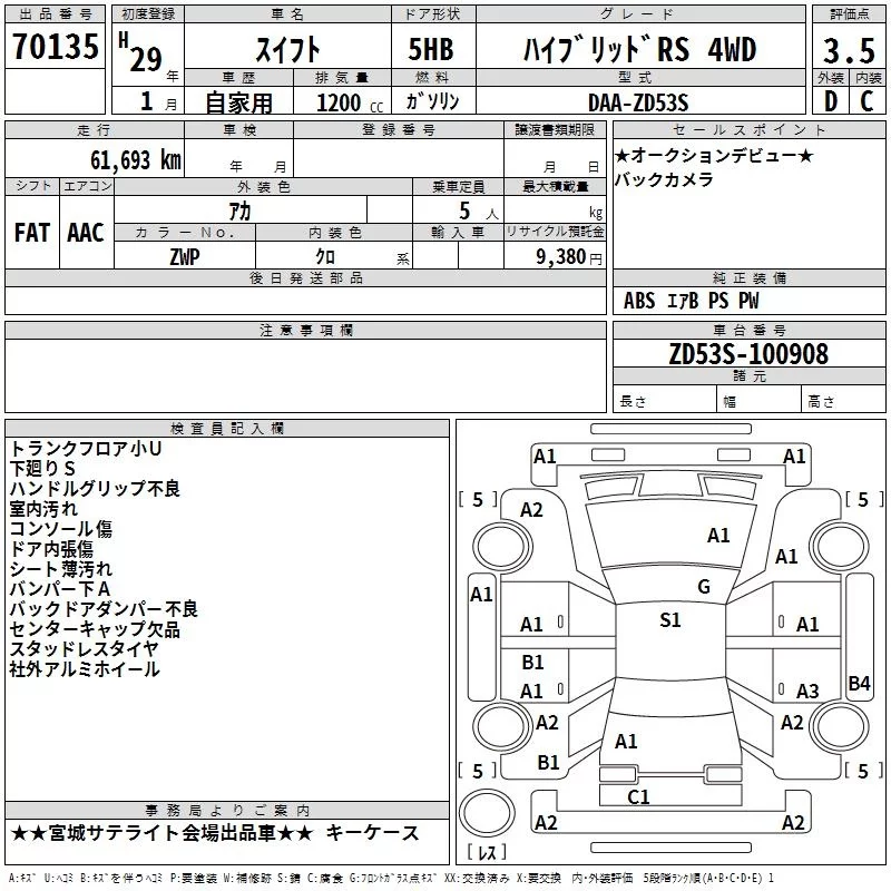 Suzuki SWIFT с аукциона Японии TAA Tohoku лот № 70135
