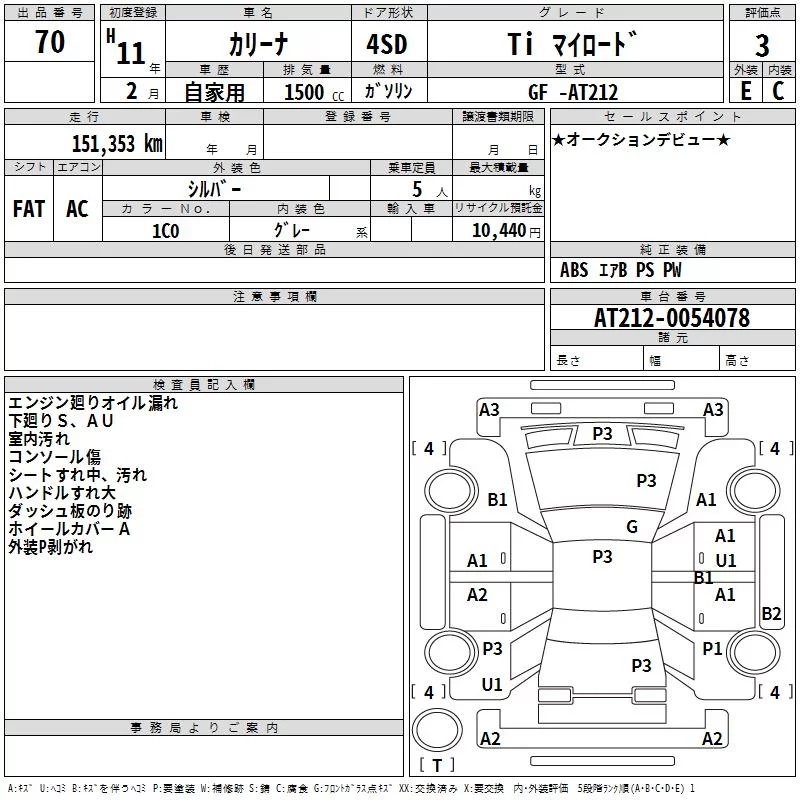 Toyota CARINA с аукциона Японии TAA Tohoku лот № 70