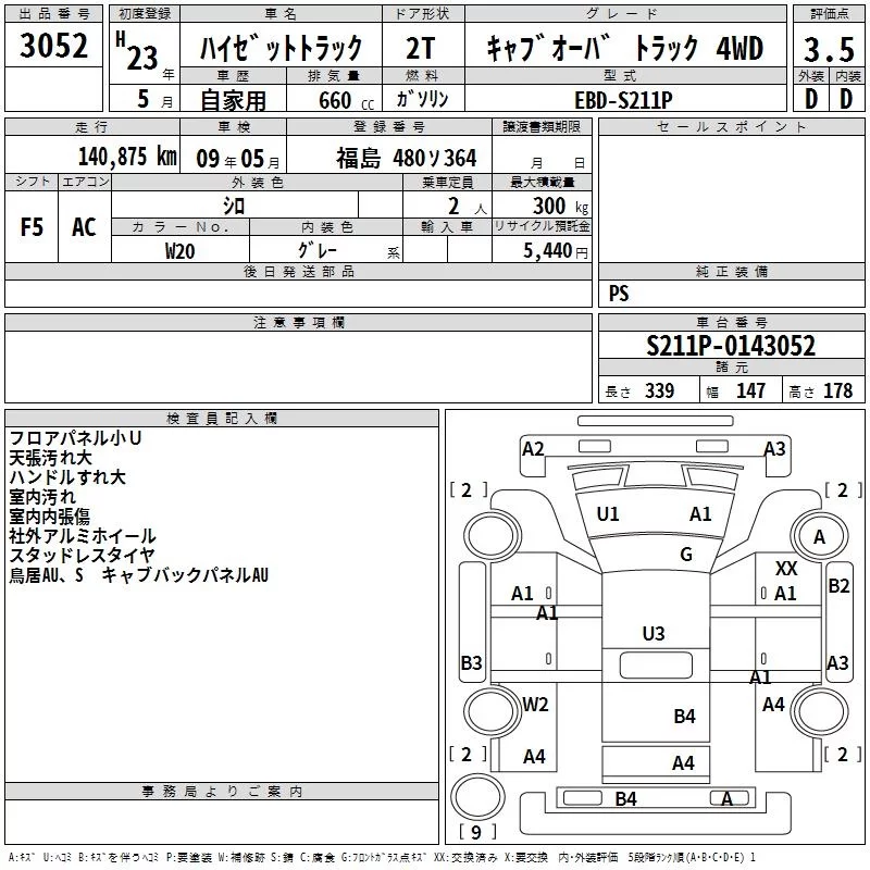 Daihatsu HIJET TRUCK с аукциона Японии TAA Tohoku лот № 3052