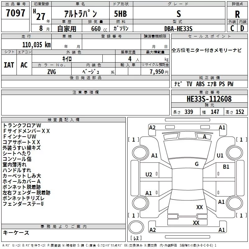 Suzuki ALTO LAPIN с аукциона Японии TAA Tohoku лот № 7097