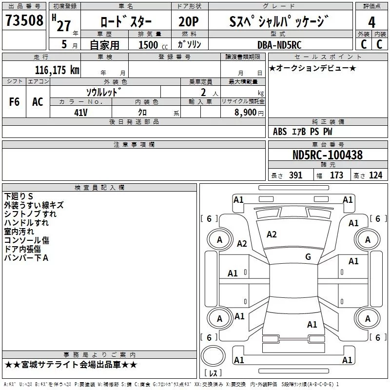 Mazda ROADSTER с аукциона Японии TAA Tohoku лот № 73508