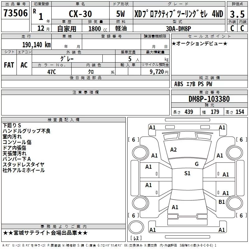 Mazda CX-30 с аукциона Японии TAA Tohoku лот № 73506
