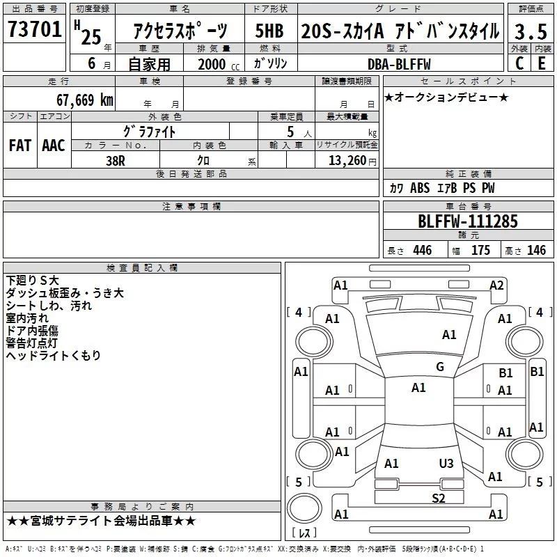 Mazda AXELA с аукциона Японии TAA Tohoku лот № 73701